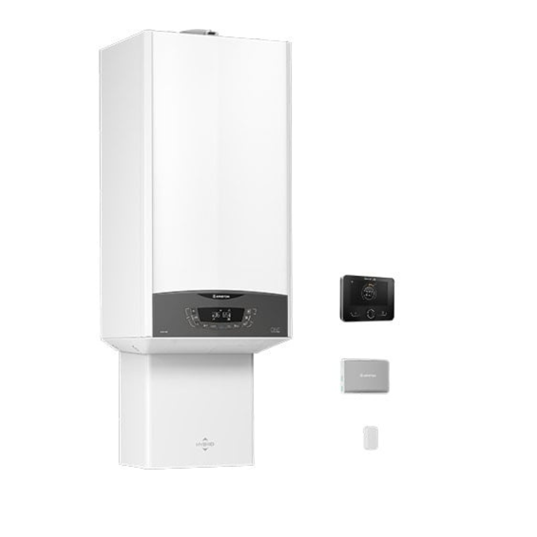 La pompe à chaleur hybride CLAS ONE HYBRID NET R32 50/35 d’Ariston est une solution thermique tout-en-un qui combine intelligemment les performances d’une pompe à chaleur air/eau et la fiabilité d’une chaudière gaz à condensation. Conçue pour optimiser le confort tout en réduisant la consommation énergétique, elle couvre les besoins en chauffage, eau chaude sanitaire et rafraîchissement, avec un rendement pouvant atteindre 195 %.